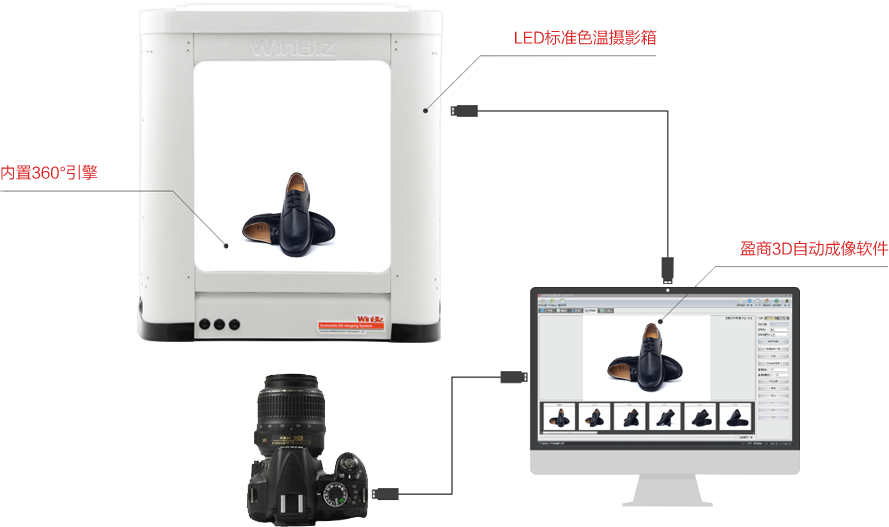 內(nèi)置5500K標(biāo)準(zhǔn)色溫LED攝影燈,還原產(chǎn)品真實色彩,360 度無暗角布光讓您輕松拍攝!